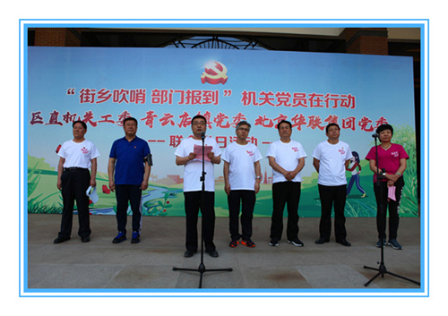 | 2018年4月27日,区直机关工委和青云店镇党委在北京华联创新中心举办“街乡吹哨、部门报到”机关党员在行动联合主题党日活动暨“党建引领、争当表率”活动启动式。区委常委、统战部长、机关工委书记金卫东,区委常委、组织部长喻华锋,区政协副主席冯波出席活动。区直机关工委系统各党组织成员、党员干部,以及青云店镇党政班子、机关干部360余人参加活动。
