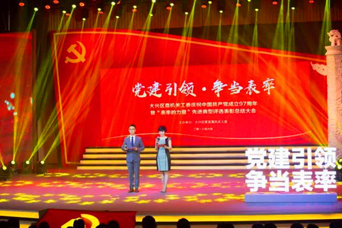 “党建引领争当表率”,在中国共产党成立97周年之际,大兴区直机关工委将以习近平新时代中国特色社会主义思想和党的十九大精神为指引,在区委的正确领导下,不忘初心,砥砺奋进,不断增强凝聚力、战斗力,为服务全区经济社会发展提供坚强的组织保障,为打造首都南部发展新高地贡献力量!